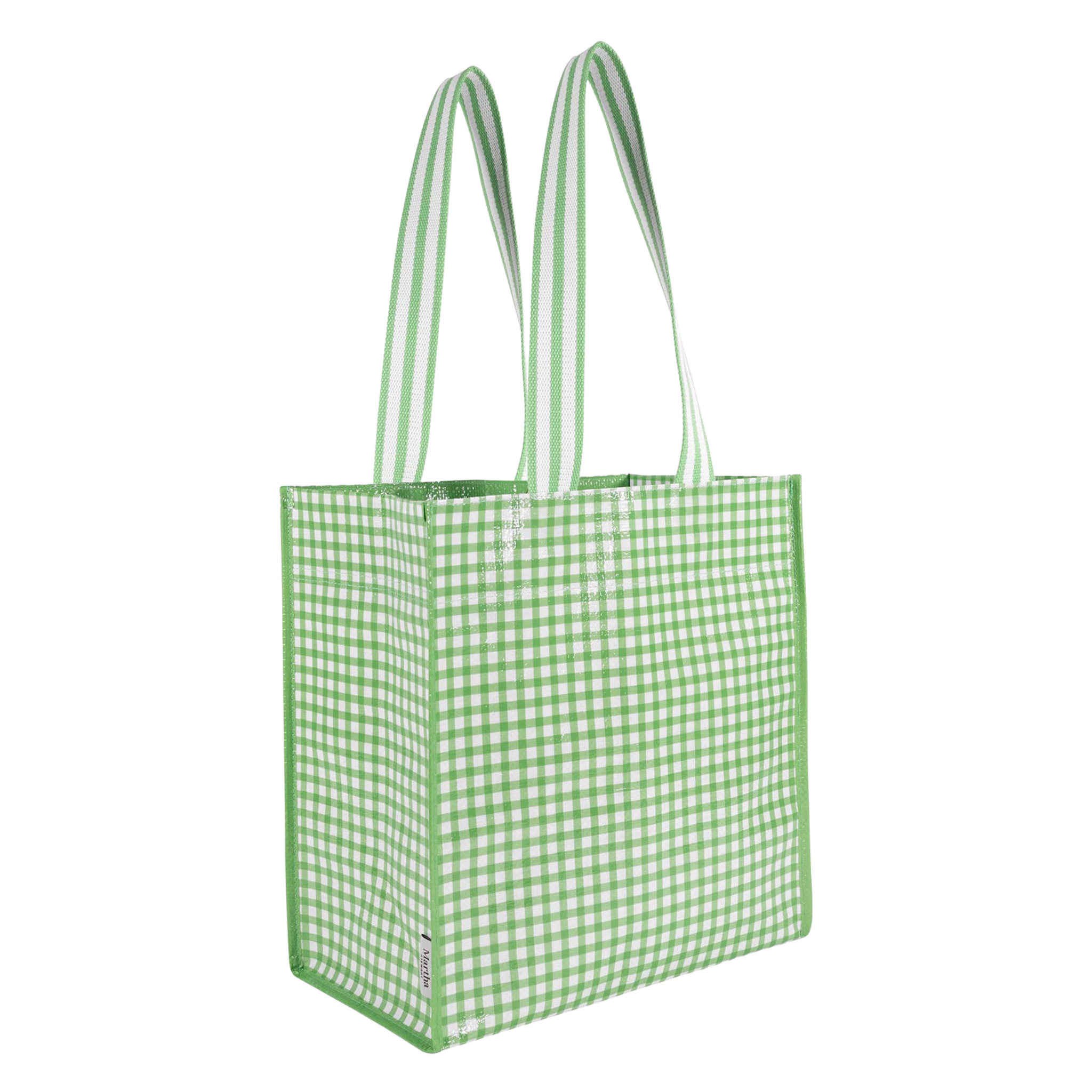Bring style and durability to your daily routine with the Martha Stewart Oversized Market Tote in charming green gingham. Designed for function and everyday use, this spacious tote is perfect for grocery runs, weekend outings, or organizing essentials on the go. Crafted from water-resistant polypropylene (PP) material, this sturdy bag is built to last through countless errands. The reinforced nylon handles provide extra strength and a touch of signature Martha Stewart elegance. The flat base ensures the bag stands upright while packing, and the wide-open top makes loading and unloading effortless. Whether used for shopping, storage, or travel, this oversized market tote is a reliable and stylish essential for any household.