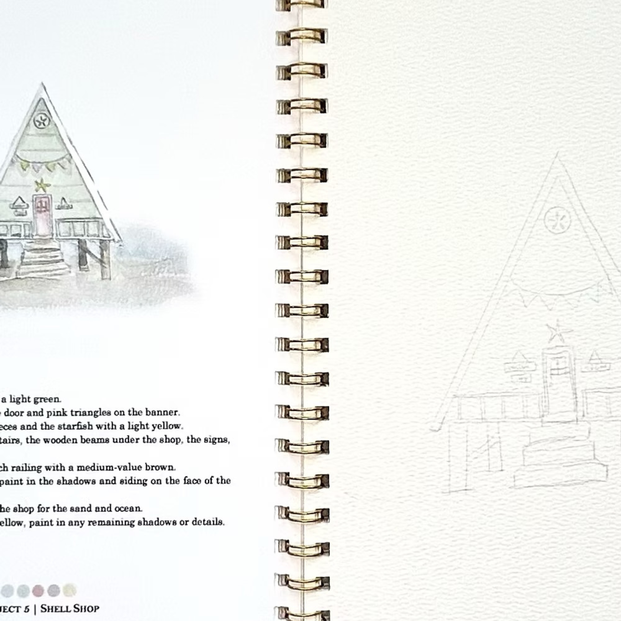 - 10 beginner friendly watercolor projects with a lightly sketched outline.